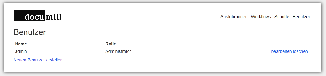 - Administrator kann Workflows ausführen und zudem auch neu erstellen und ändern. Zudem kann ein Administrator auch Benutzerrechte verwalten.