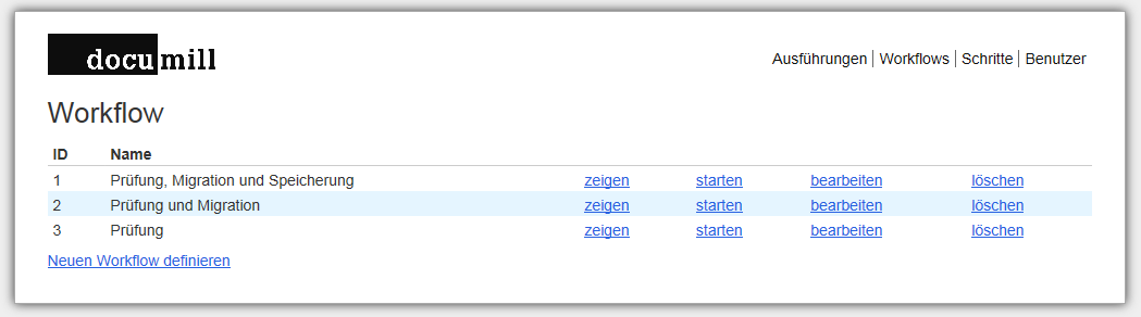 Mit „Zeigen“ werden die einzelnen Schritte des jeweiligen Workflows angezeigt.