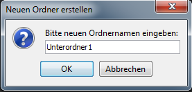 Soll innerhalb des SIP ein zusätzlicher Unterordner angelegt werden, dann wir der übergeordnete Ordner markiert und über den Menueintrag „Element“ –> „Neues Verzeichnis…“ das Unterverzeichnis erzeugt. Dieses muss noch mit einem Namen versehen werden.
