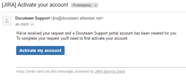 Wenn Sie mit Ihrer E-Mail-Adresse zum ersten Mal ein Ticket bei uns eröffnen, dann erhalten Sie eine zweite Mail mit der Einladung zur Eröffnung eines Benutzeraccounts.